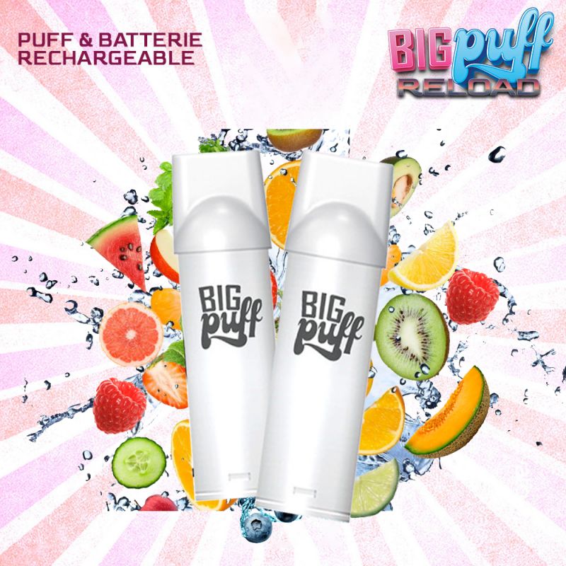 Ces cartouches sont spécialement conçues pour les kits Big Puff Reload. Ce pack comprend 2 cartouches en 10 ou 20mg de nicotine selon votre choix.